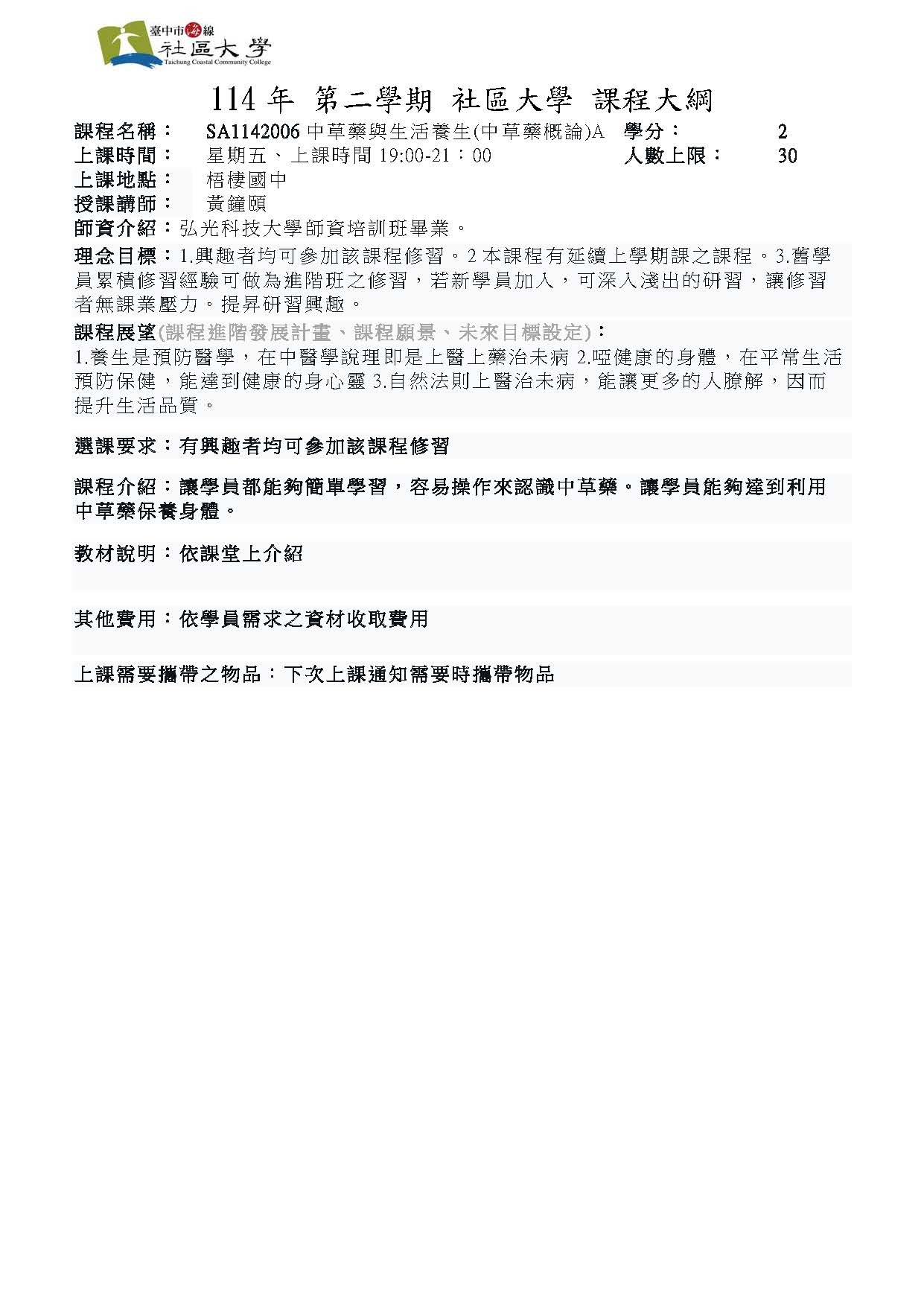 SA1142006中草藥與生活養生(中草藥概論)A