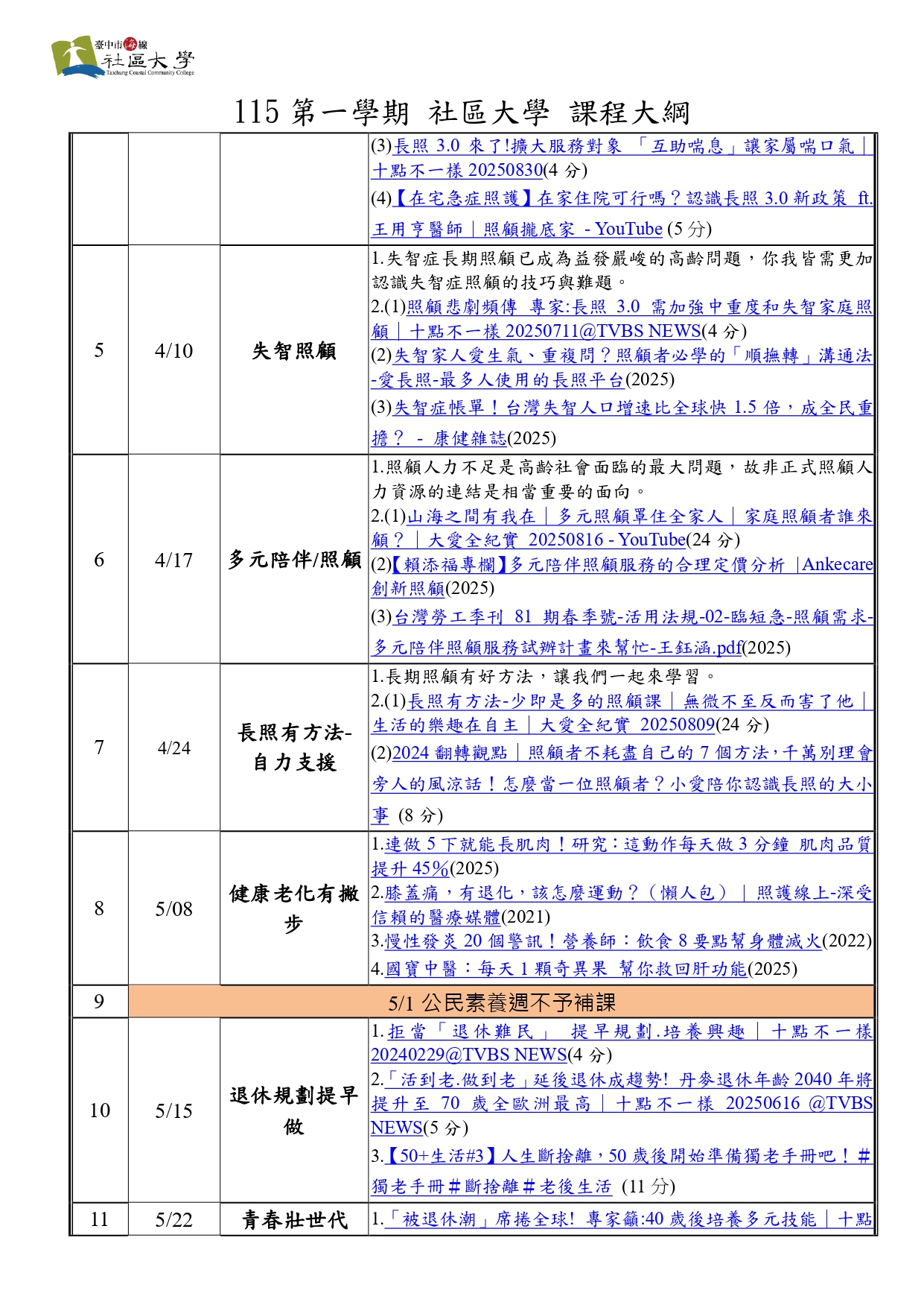 3. 參與至少 1 次課程相關講座。