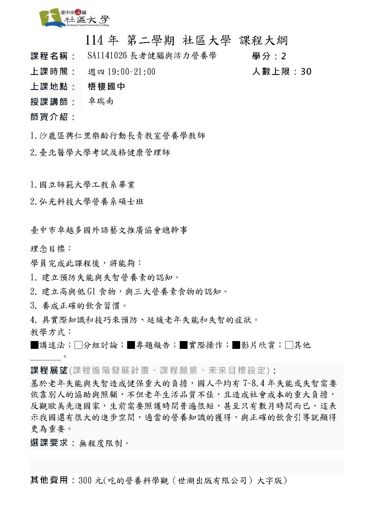 SA1142026長者健腦與活力營養學