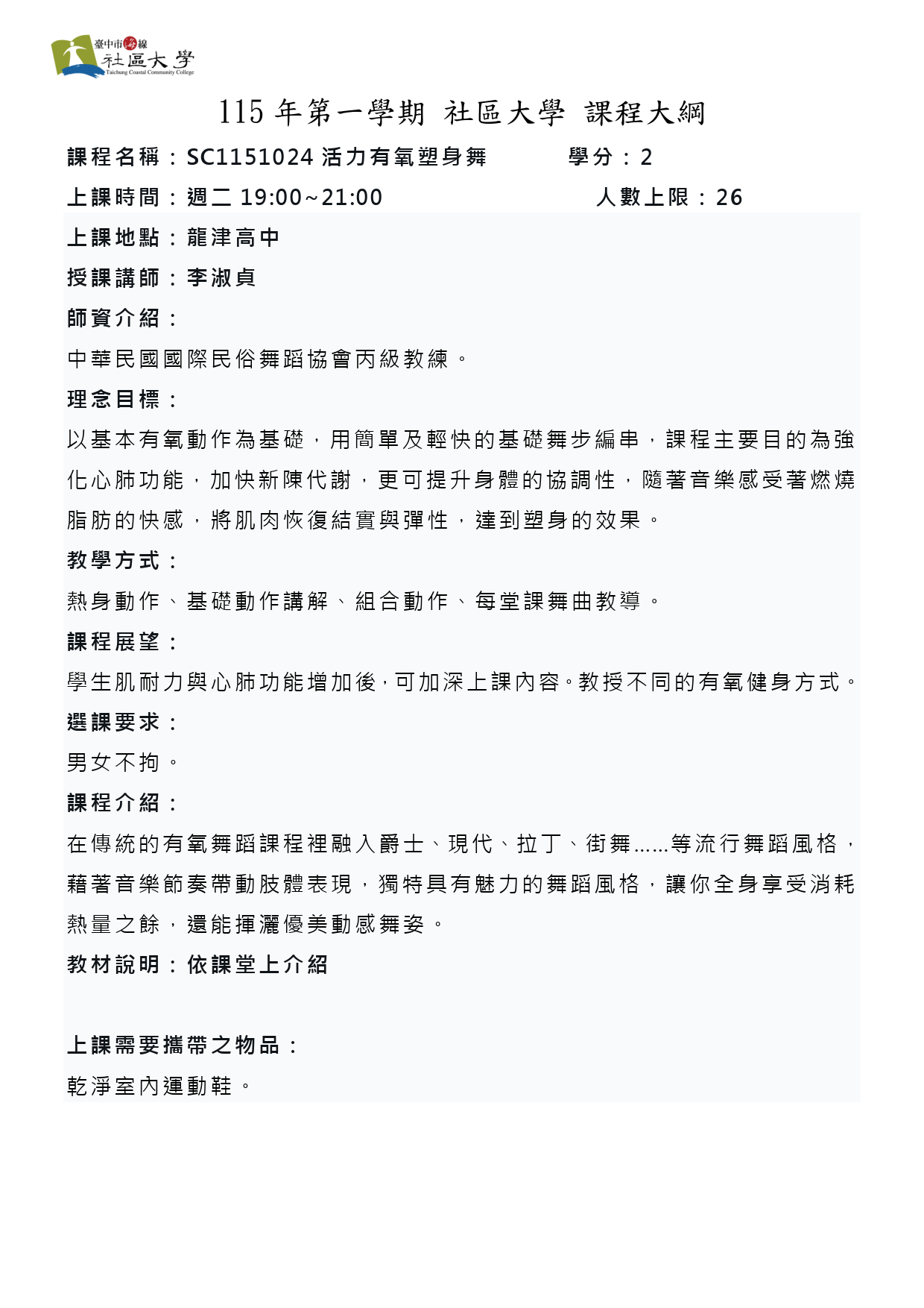 上課地址:臺中市龍井區三港路130號