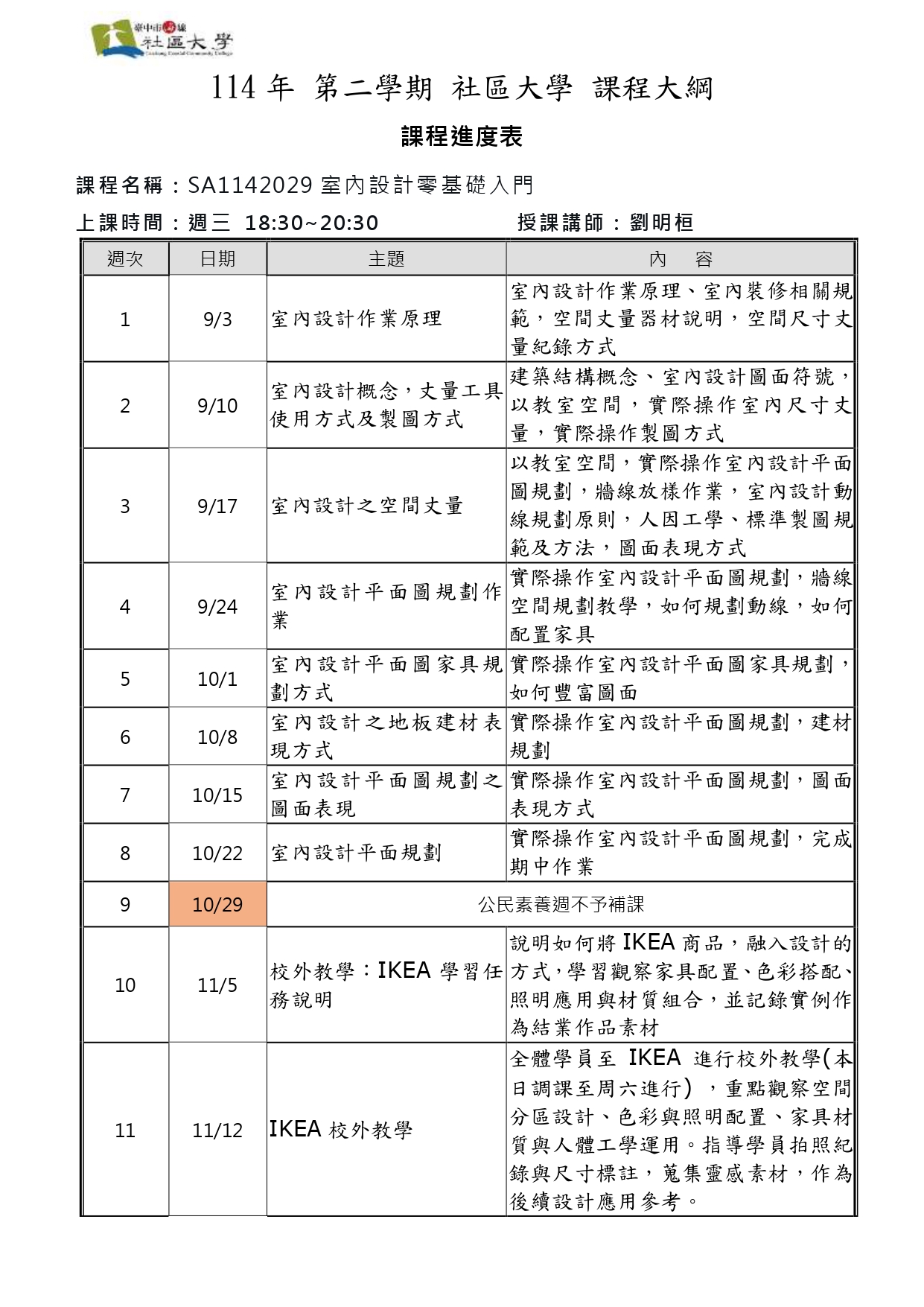 上課時間: