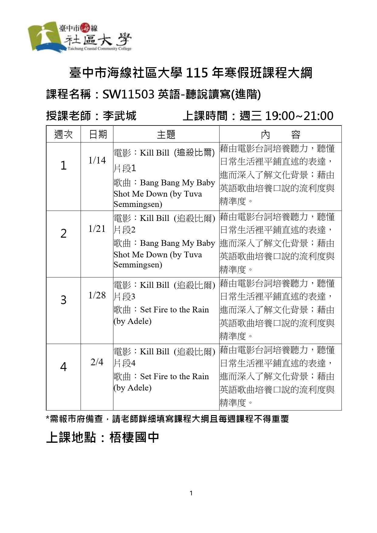上課時間: