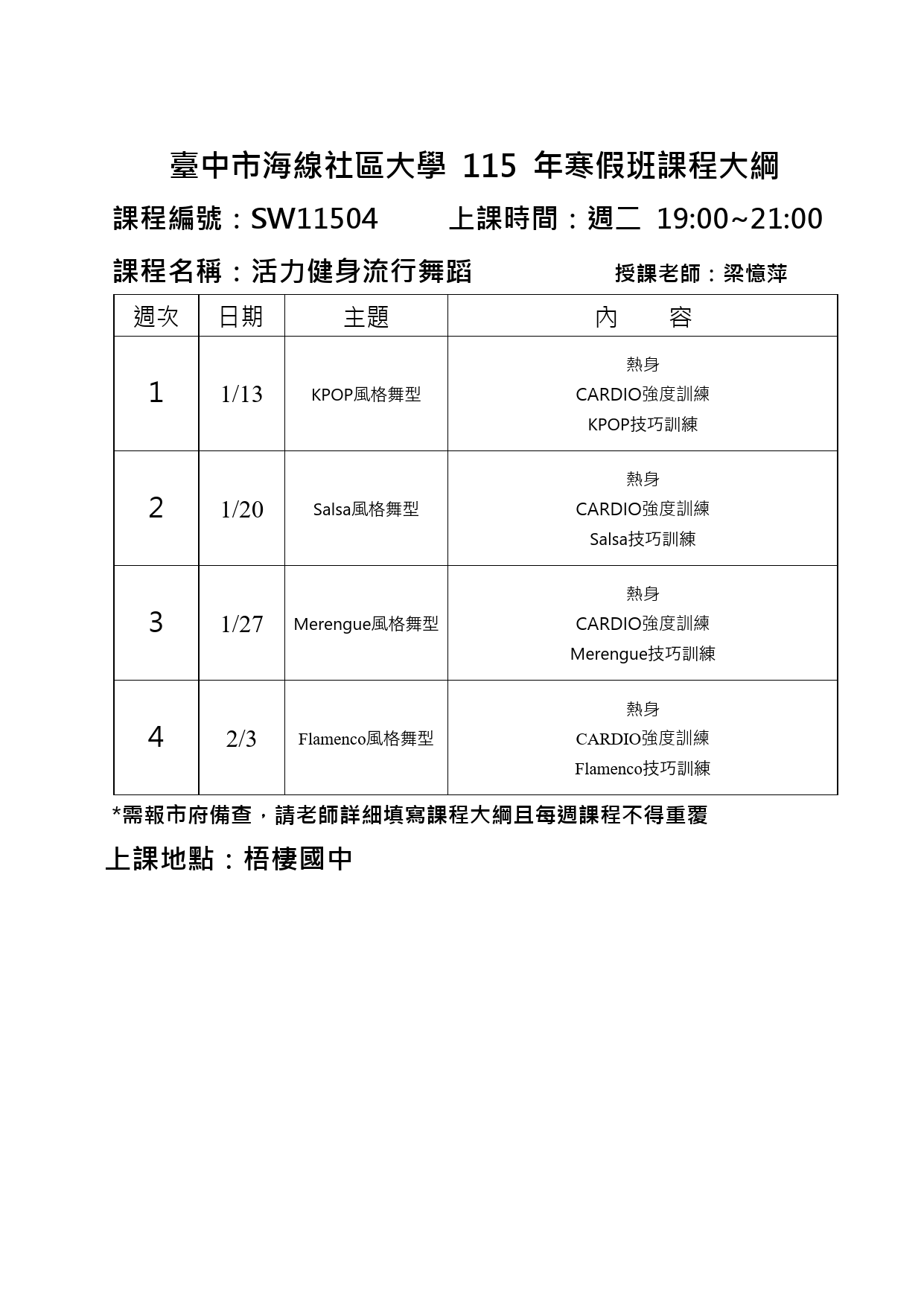 寒假班-SW11504 活力健身流行舞蹈