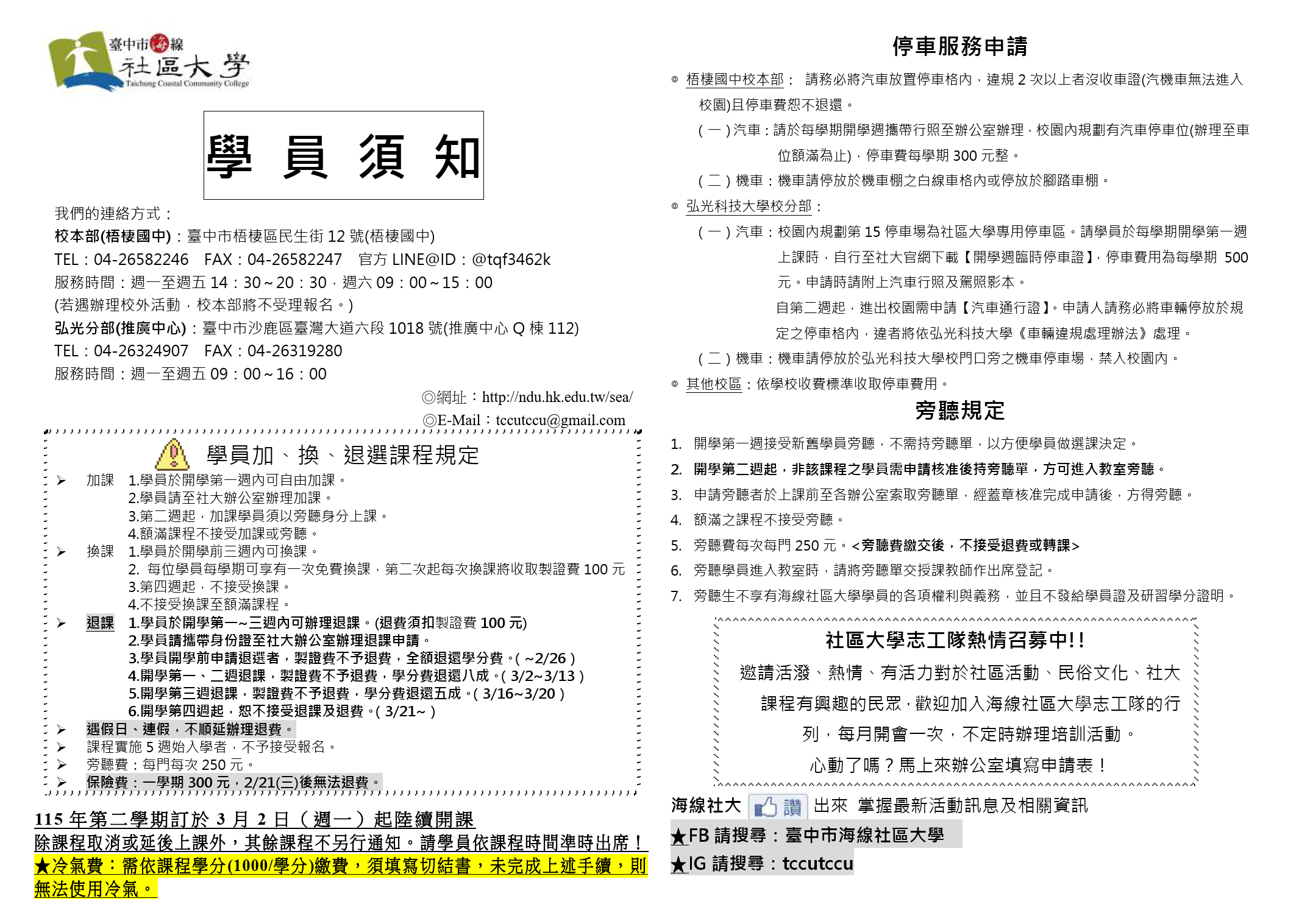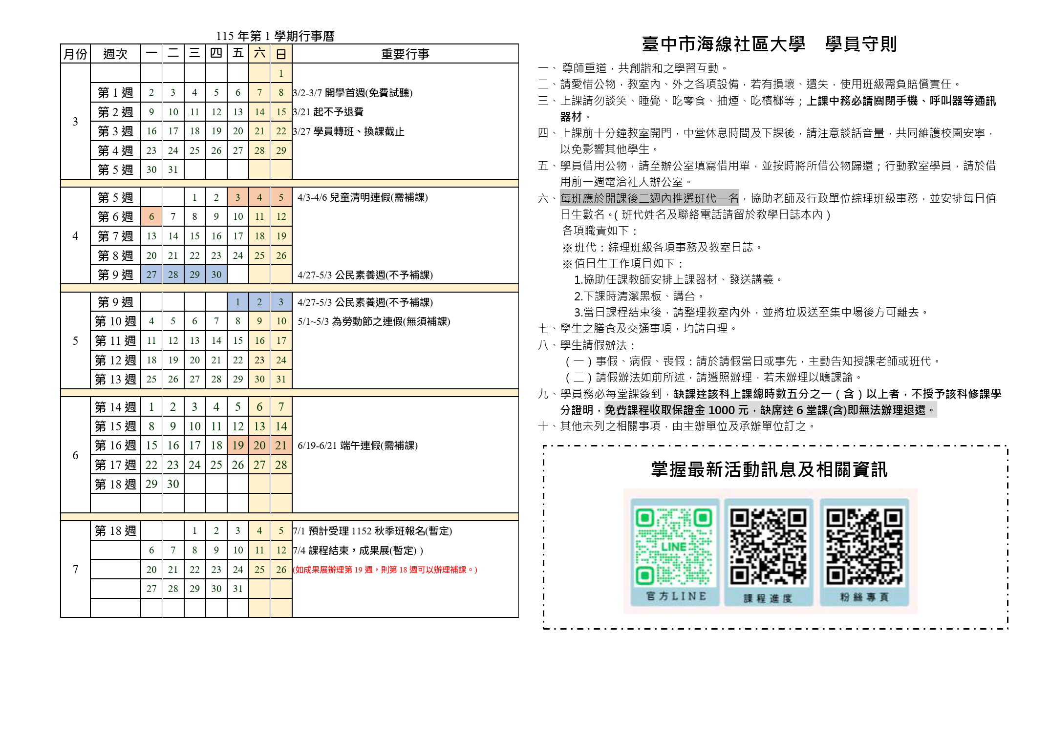115春季班學生需知與行事曆
